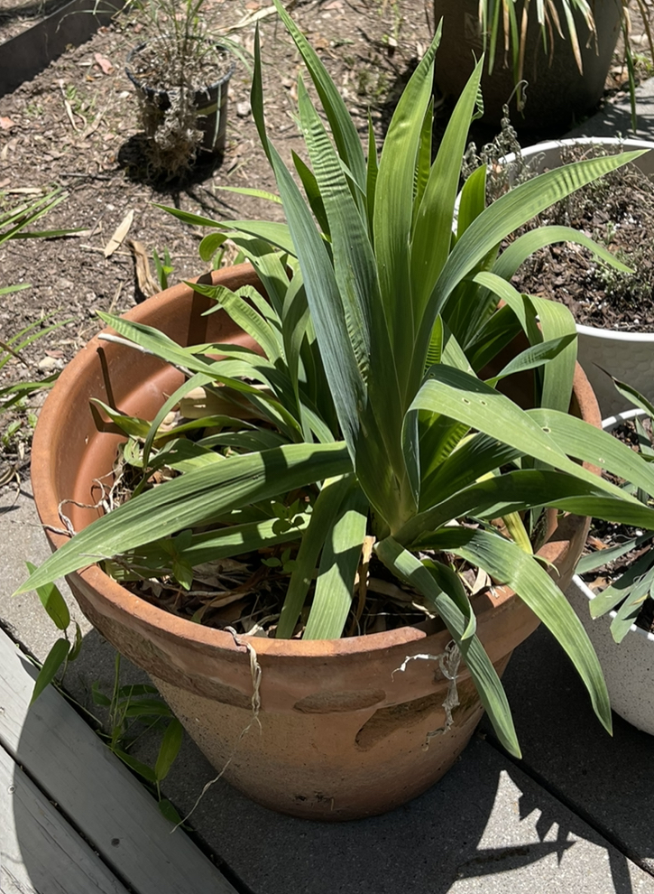 If this plant ends up not flowering this spring /summer, in the late fall re-pot to a larger size pot. Please take a picture of the rhizomes/corms or bulbs then resubmit. Perhaps with this clue we could narrow down the genus for you. Thank you and best wishes!