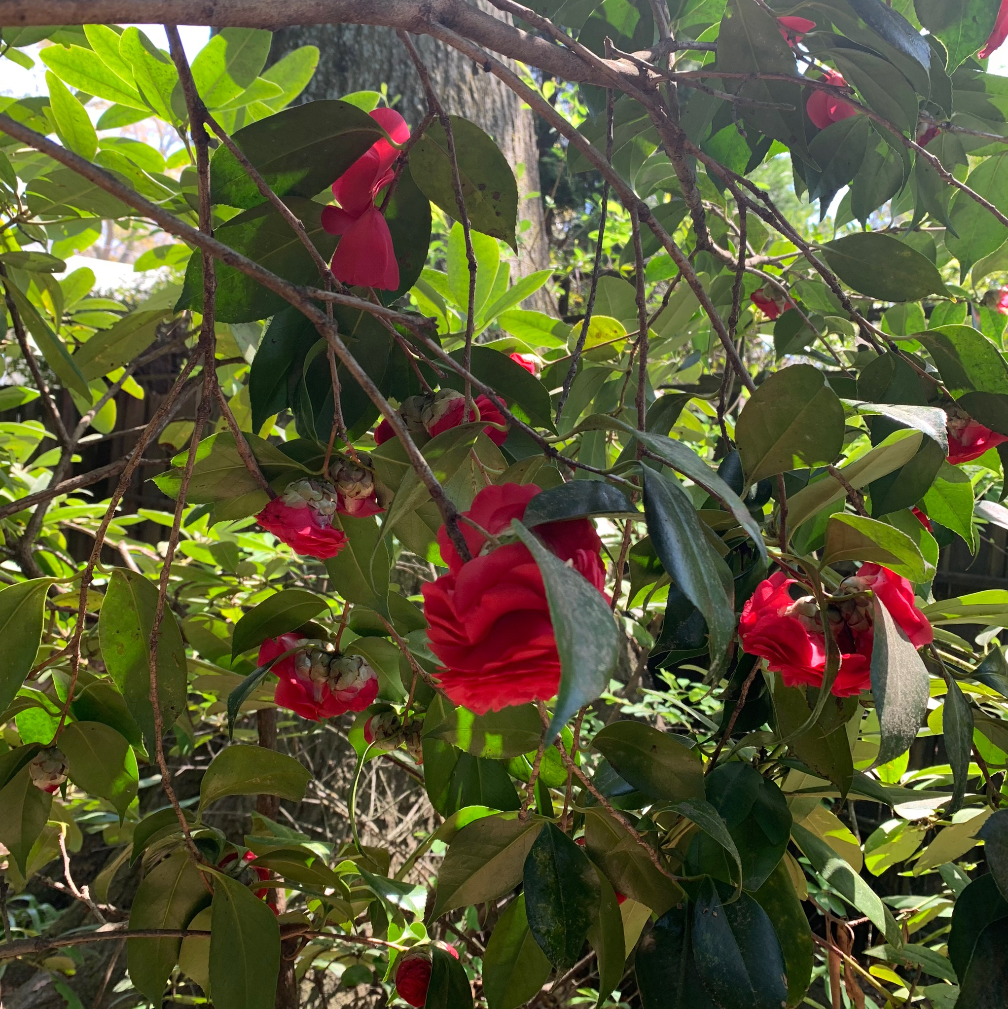 Maybe a weeping type of camellias. Check out this included link for another variety of red camellia. Best wishes!