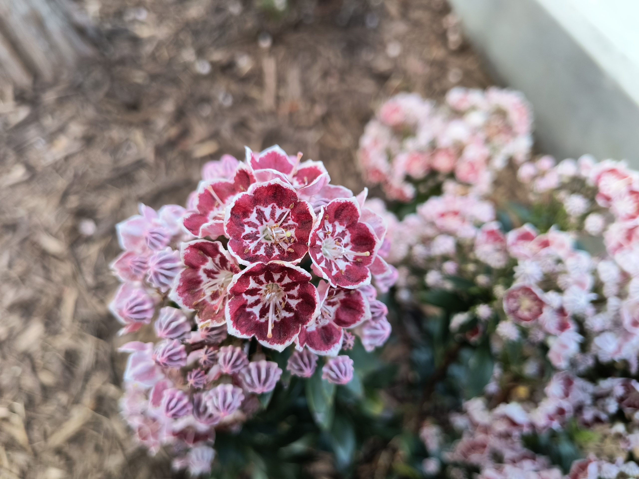 Check out cultivars of mountain laurel (Kalmia) and if you have a match. Best wishes!