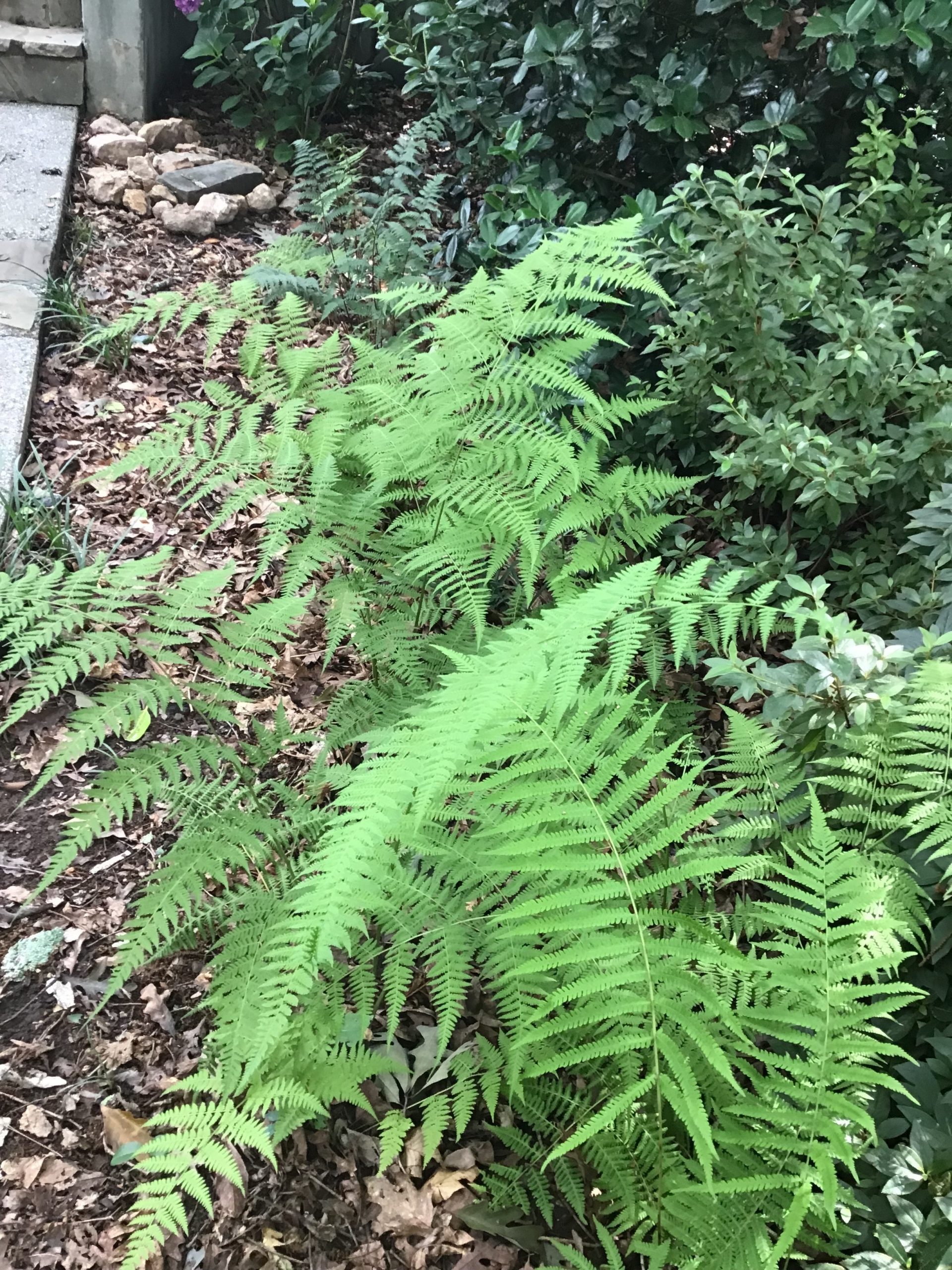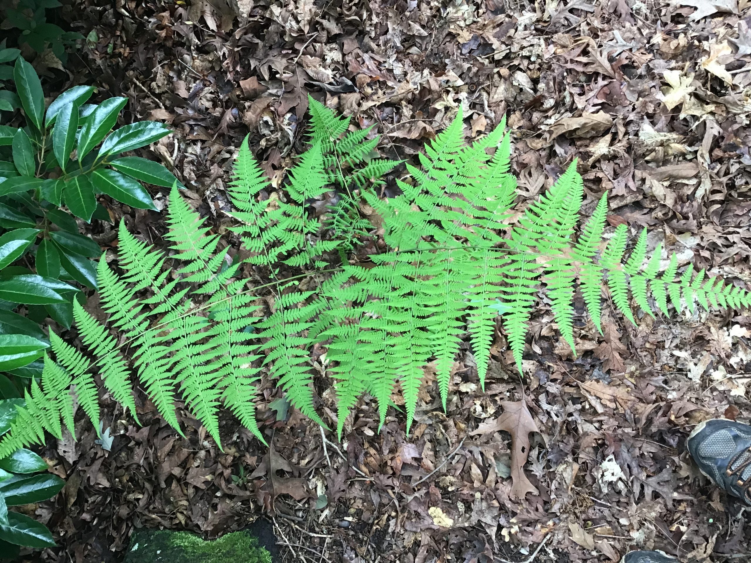 A patch of his lovely fern was found in the woods at the back of my lot in Atlanta, but I can't identify it from the Native Ferns of Georgia book. It grows 3-4' tall & as you can see is lacy & delicate. The patch ended up mostly covered by a neighbor's kudzu last fall but a number survived after the kudzu died back for winter.