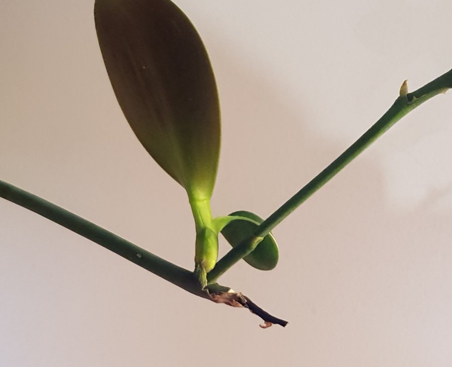 One of my orchids is sprouting leaves from an old flower stem, while another flower stem is developing from the original plant. Is there something special I should do with the ‘baby’ plant?