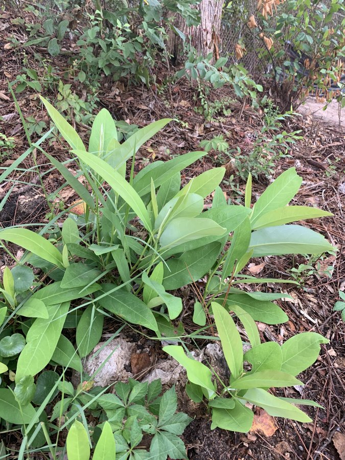 Without flowers to tell for certain, I’m guessing something in the Magnolia? Please give us an update as this grow more mature with a side view photo toward the base of one the main stems. For now check out Magnolia virginiana and some of its cultivars from the included link below. Click on the images to enlarge. Again I’m speculating. Best wishes! https://plants.ces.ncsu.edu/plants/magnolia-virginiana/
