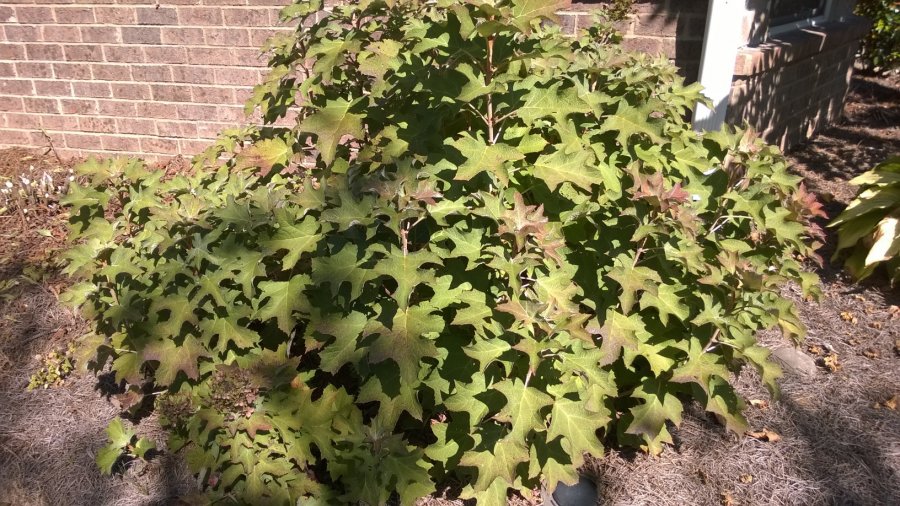I can’t see the leaves and branches clearly to be certain. This could be a cultivar of oakleaf hydrangea group (Hydrangea quercifolia) or a cultivar of Viburnum group (maybe V. trilobum). I’m leaning toward oakleaf hydrangea. You’ll know more when it blooms. Click on images of H. quercifolia from link below to enlarge. Best wishes! https://www.google.com/search?q=Hydrangea+quercifolia-+leaves&tbm=isch&tbo=u&source=univ&sa=X&ved=0ahUKEwj6_vbArsnPAhXM7iYKHS0AC6UQ7AkILA&biw=1920&bih=909#imgrc=_