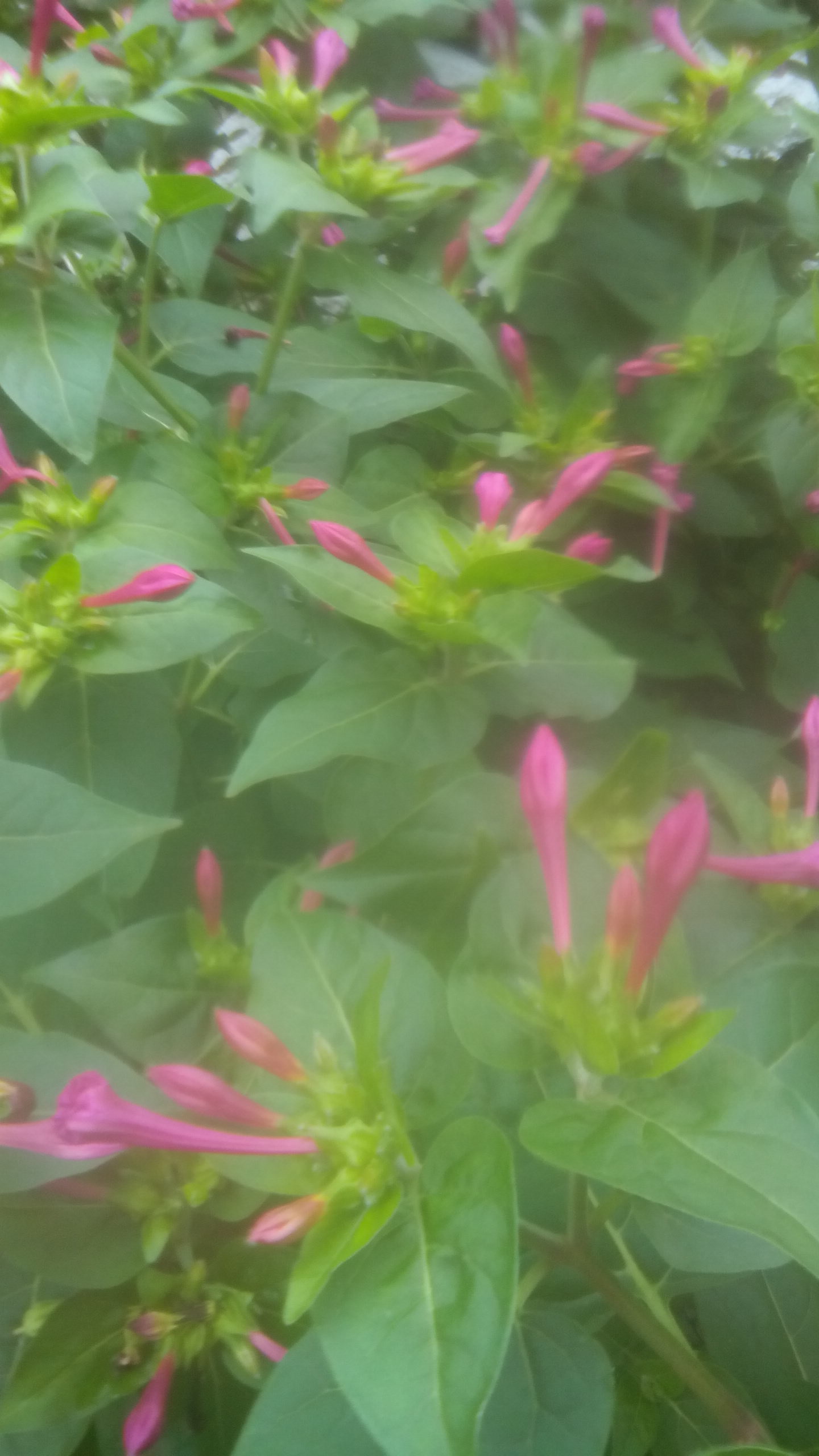 That is Mirabilis jalapa, Four O’clocks. https://en.wikipedia.org/wiki/Mirabilis_jalapa