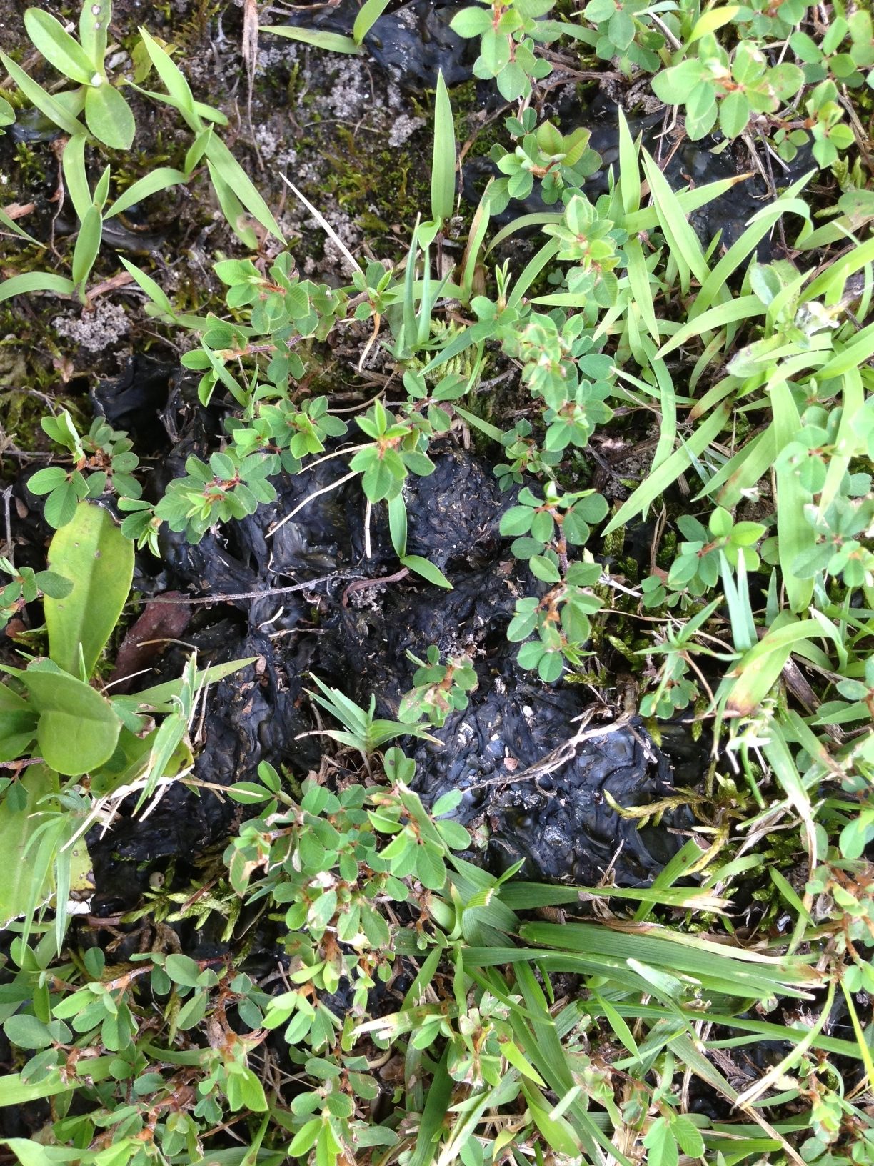 Black / green slime. Green when wet black when dry weather. We raked it up many time, limed heavy and air rated yard. This has spread from front yard to back yard. ItÕs taking over