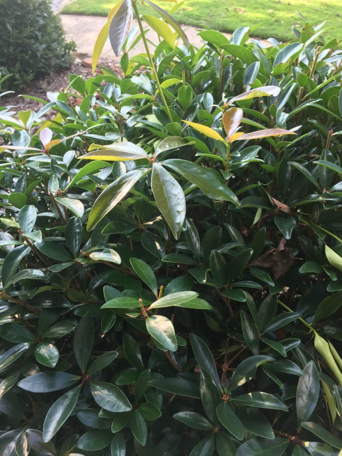 I could be wrong, but these leaves look like either Japanese cleyera (Cleyera japonica) or Ternstroemia gymnanthera (also share the common name ‘cleyera’ with the C. japonica). I’m guessing and leaning toward Ternstroemia. Flowers will help narrow down its ID. The included link below is for T. gymnanthera. Best wishes! https://floridata.com/Plants/Theaceae/Ternstroemia%20gymnanthera/250