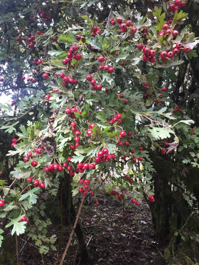 Red berries with thin flat leaf