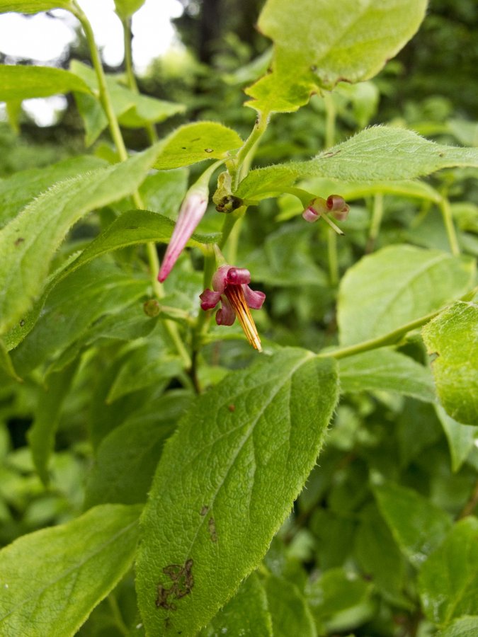 Lower stems are woody. Leaves and flowers on new growth. All flowers axillary. Leaves finely toothed with hairs on the points of the teeth. Alternate growth. Bush about 2-2.5 feet tall. Growing at 6000 ft elevation at Waterrock knob on the Blue Ridge Parkway.