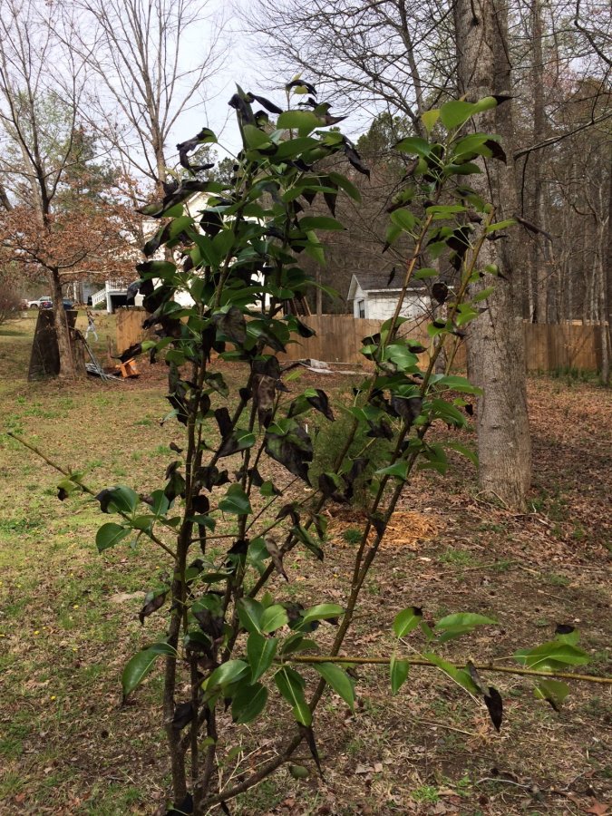 I listen to your show all the time, it is great!!! This may not be the correct location to submit this, if not, I apologize. Can I save my pear tree? Leaves turning black. Planted just after Christmas.