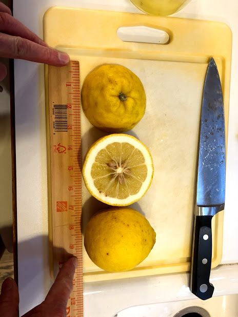This lemon (?) tree is about 15 feet tall and was loaded with softball+ size citrus (all of the fruits were in the 3-inch diameter range or bigger). It is definitely cold hardy and has been in this location for years. It has wicked thorns. What type of lemon/citrus is it? It smells a bit like a grapefruit but tastes more like a lemon.