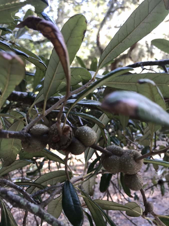 These two pics were taken last month at Cumberland Island. I thought the 1st pic were acorns, but closer they look like a growth of some sort. The 2nd pic was on the beach, a sprouted seedling. I don’t know what either of these plants are, any help?