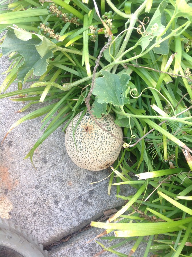 Looks like a small cantaloupe but smells and taste ike a cucumber.