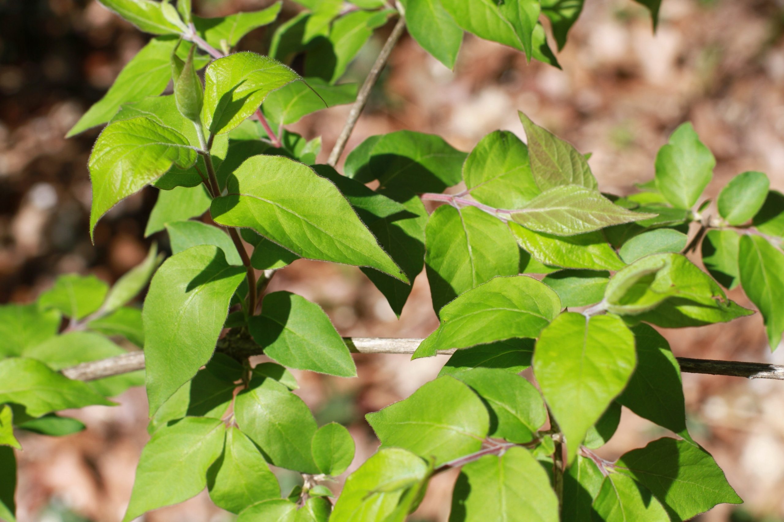 To my eyes this maybe something in the Caprifoliaceae group (honeysuckle family)? And with the slightly hairy opposite leaves, I’m wondering if this could be some type of honey suckle. Copy and paste the included link for one of the bush honeysuckle species Lonicera maackii (Amur honeysuckle) and see if you have a match. One of the diagnostic keys for this species is its hollow stem. Flowers are needed to confirm this suggested ID. When it blooms and isn’t honeysuckle, please resubmit with photo of flowers. Best wishes!