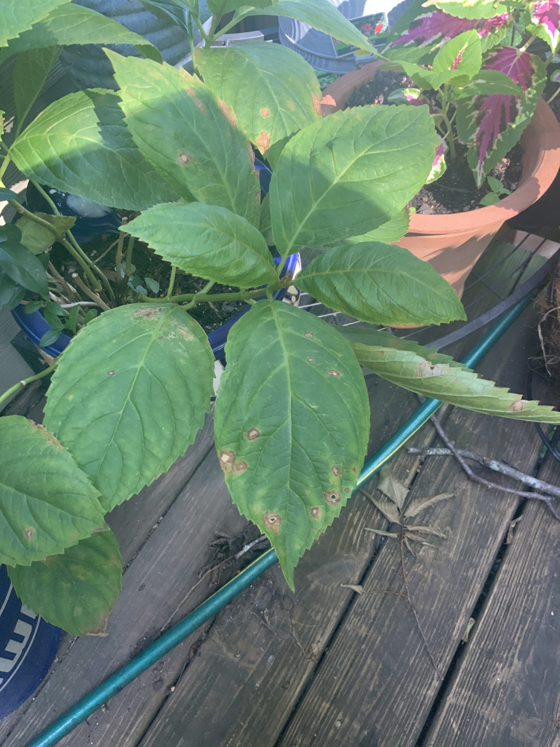 Hydrangeas with brown rusty spots