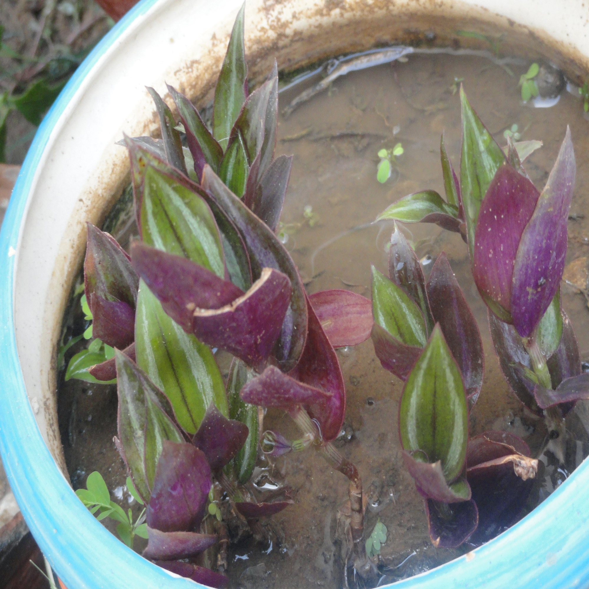 Tradescantia zebrina – “Wandering Jew”, and yes – it’s too wet in the picture.