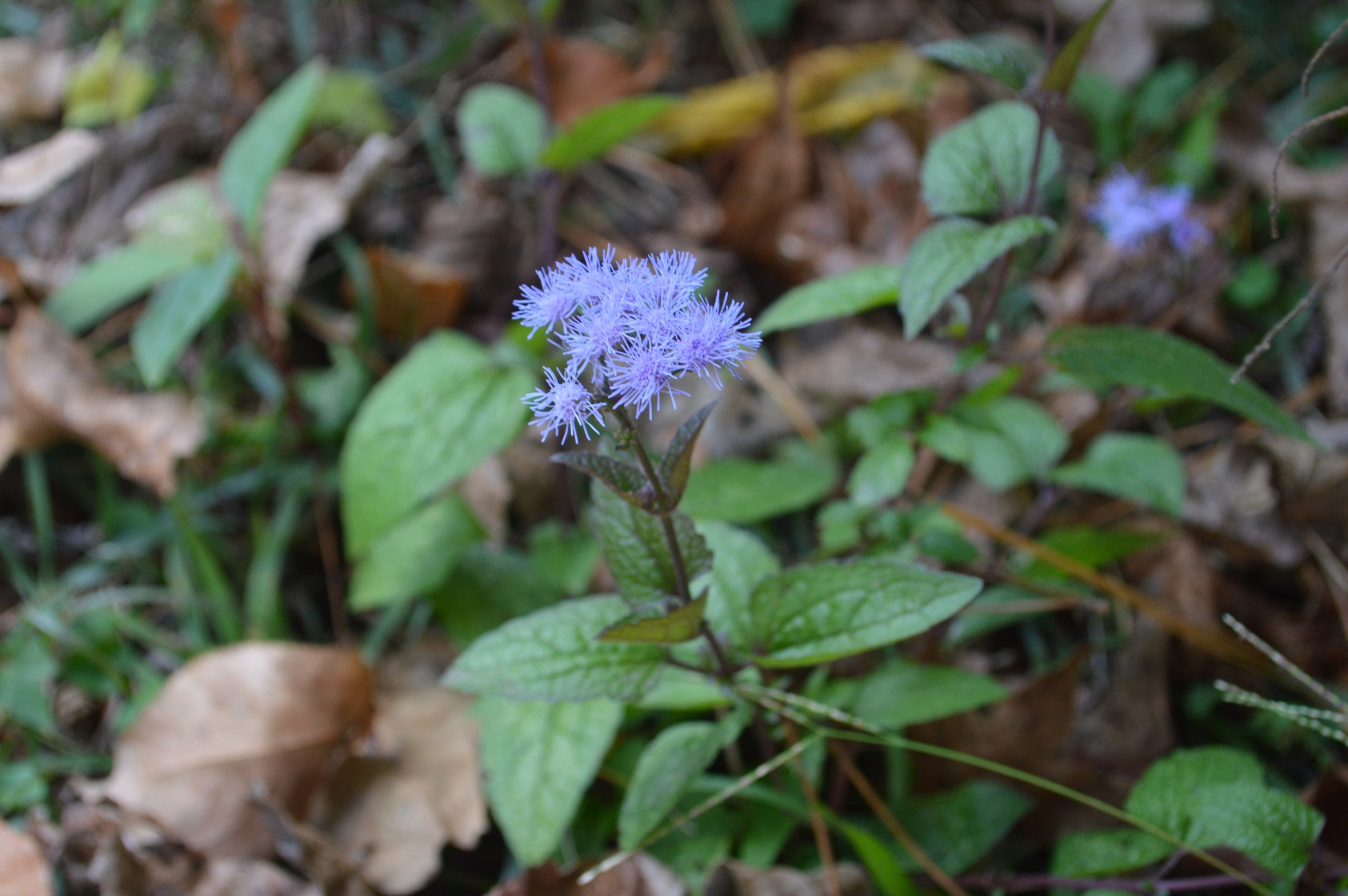 One picture shows the leaves better and one the flower. A big patch has grown for many years in a wooded, natural part of our yard. Those didn't come back this year but we have some stragglers. May have rotted under leaf cover. I tried to look them up – maybe Blue Mist? Wondered how they would do in a bed?