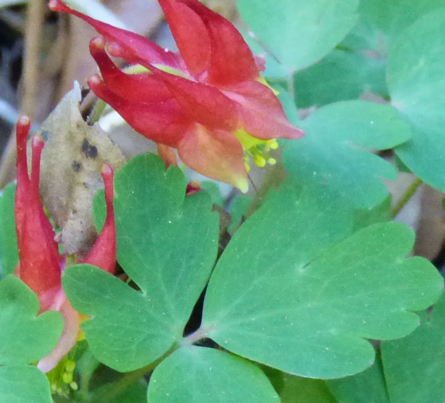 Early spring perennial, blooms in April.Has clover-like leaves and beautiful little flower that looks like Dutchman’s breeches but it’s red.