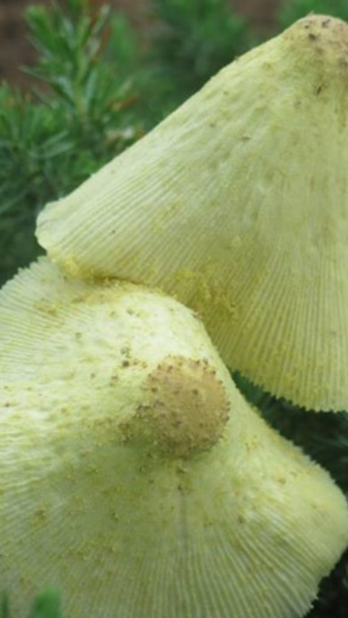 Looks like Leucocoprinus birnbaumii, Flowerpot Parasol. Not edible. http://www.inaturalist.org/taxa/amarillo_de_macetas