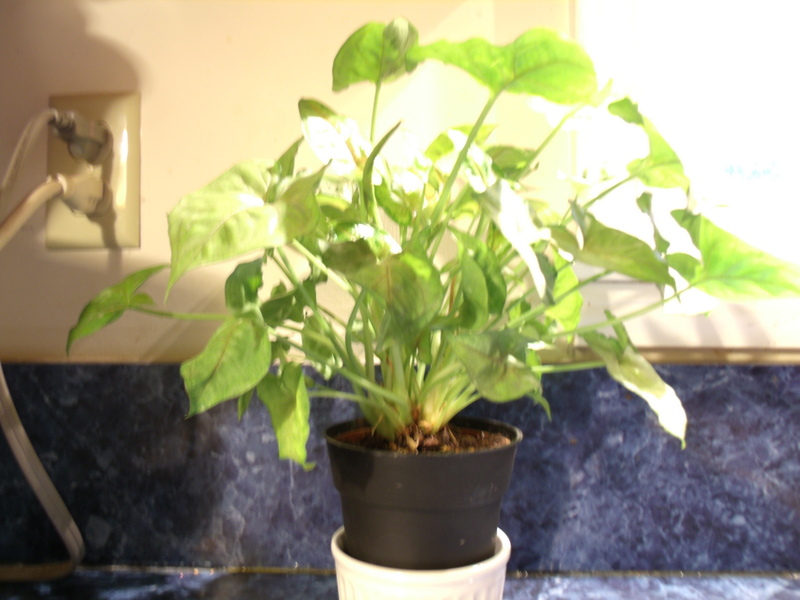 This plant is sold at various grocery stores as ” assorted 3-inch foliage” but I think it may belong to the elephant ear family. It is light green with new foliage having reddish veins that eventually darken into all green.
