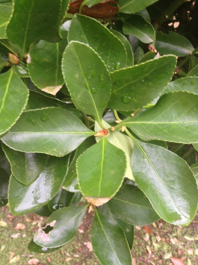 Shrub in our backyard is evergreen, leaves are jagged around edges