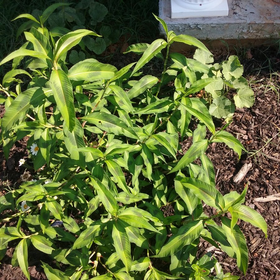 Red petiole Varigated leaves Whe plant has spread to over 2ft wide. Alternate leaf Growing next to daisies I bought at a nusery.