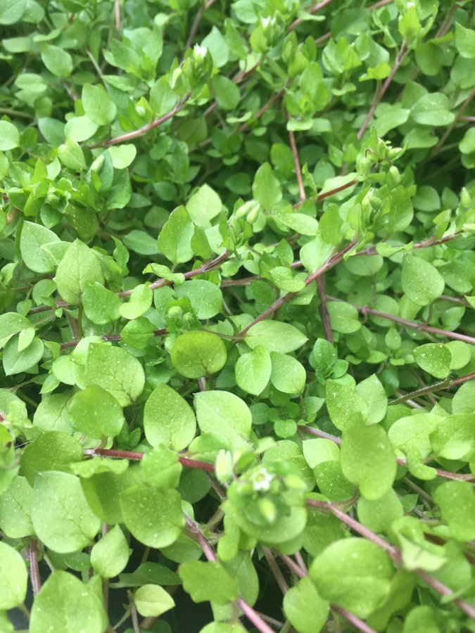 Fast-growing, with tiny white flower buds. Appeared in abandoned flower pot on patio.
