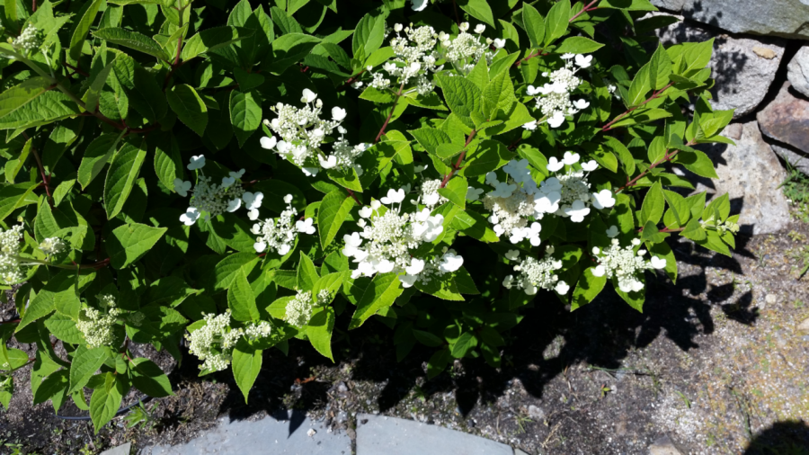 I can’t see the center of flower clear enough to be certain if this is a type of hydgrangea or viburnum. I’m leaning toward the former, and this looks similar toperhaps dwarf (Hydrangea paniculata “Dharuma”). if this isn’t hydrangea, make new post with closeup photo of flowers. Best wishes! https://jcra.ncsu.edu/resources/photographs/plants-results.php?serial=109566