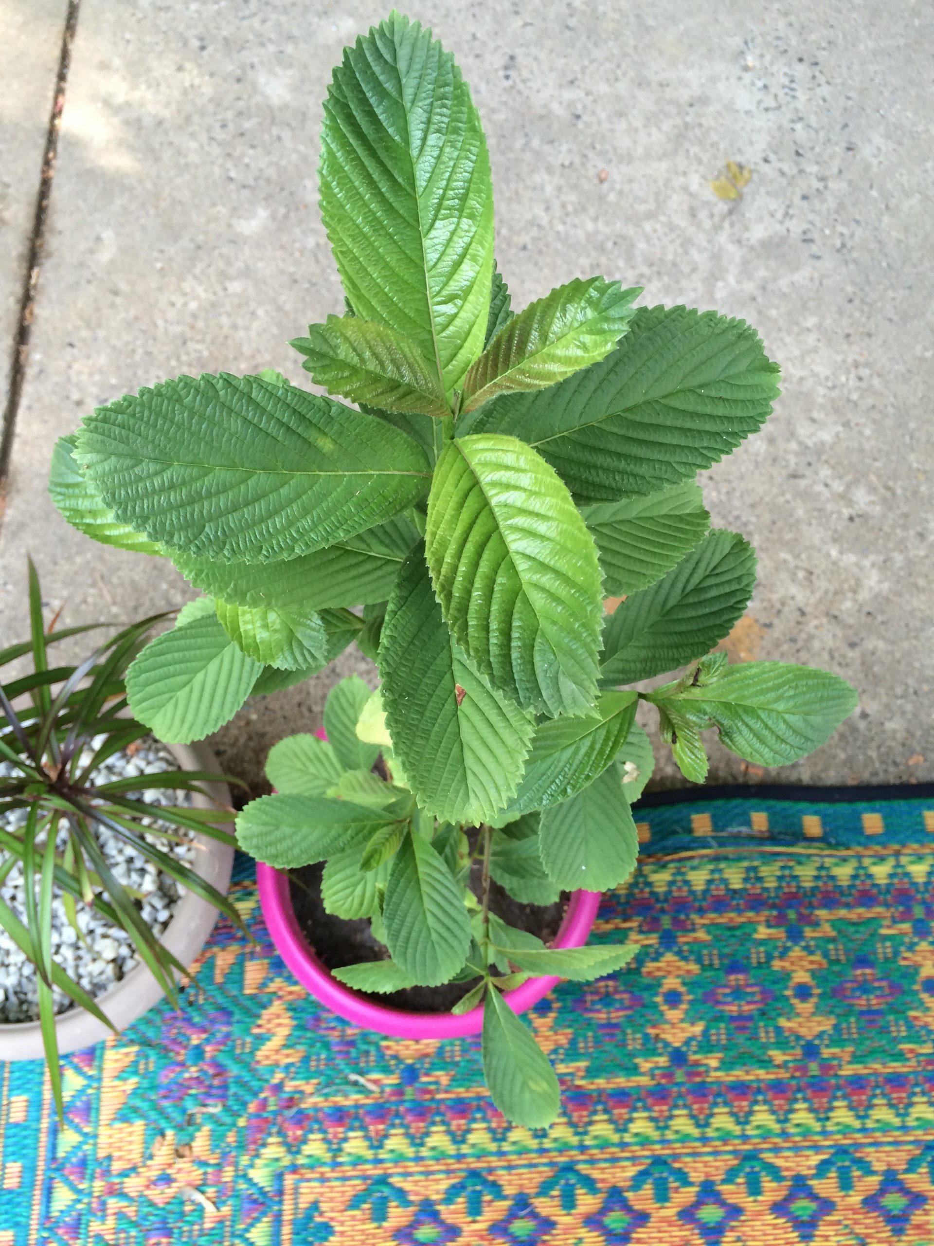 Leaves have a pungent burnt rubber smell to them. Prefers shade and lots of water. Has not flowered yet.