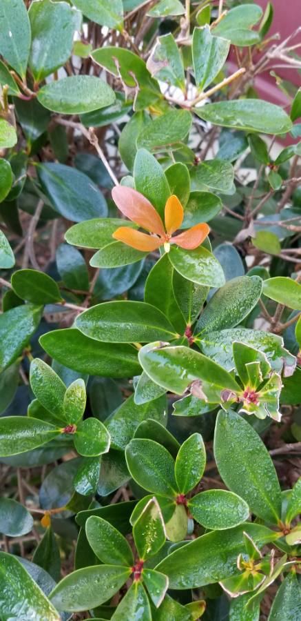 New growth is red (but I don’t think it is a photinia) trimmed to about 4 feet