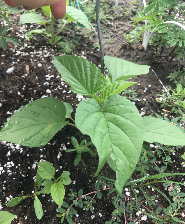 It’s hard to tell at this stage. I can’t tell if this is the slender amaranth (Amaranthus viridis) or the hairy cluster vine (Jacquemontia tamnifolia? If the leaves are alternate and stem start to grow more vine-like, it could be the hairy cluster vine (?). Check out the included link below for more information. Click on images to enlarge. If neither is a match, please resubmit as this grows more mature and give us an update. Thank you & best wishes! https://weedid.cals.vt.edu/weedimg/800