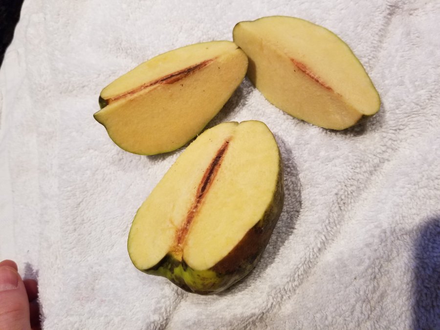 Thank you for helping solve this riddle. * I have posted additional pictures on 11/28/17. The title of that post is also “Fruit Identification, Part 2…) * The fruit was very hard, perhaps not ripened yet due to our short season for fruit. It is a bit bitter and somewhat like an apple. Thank you!
