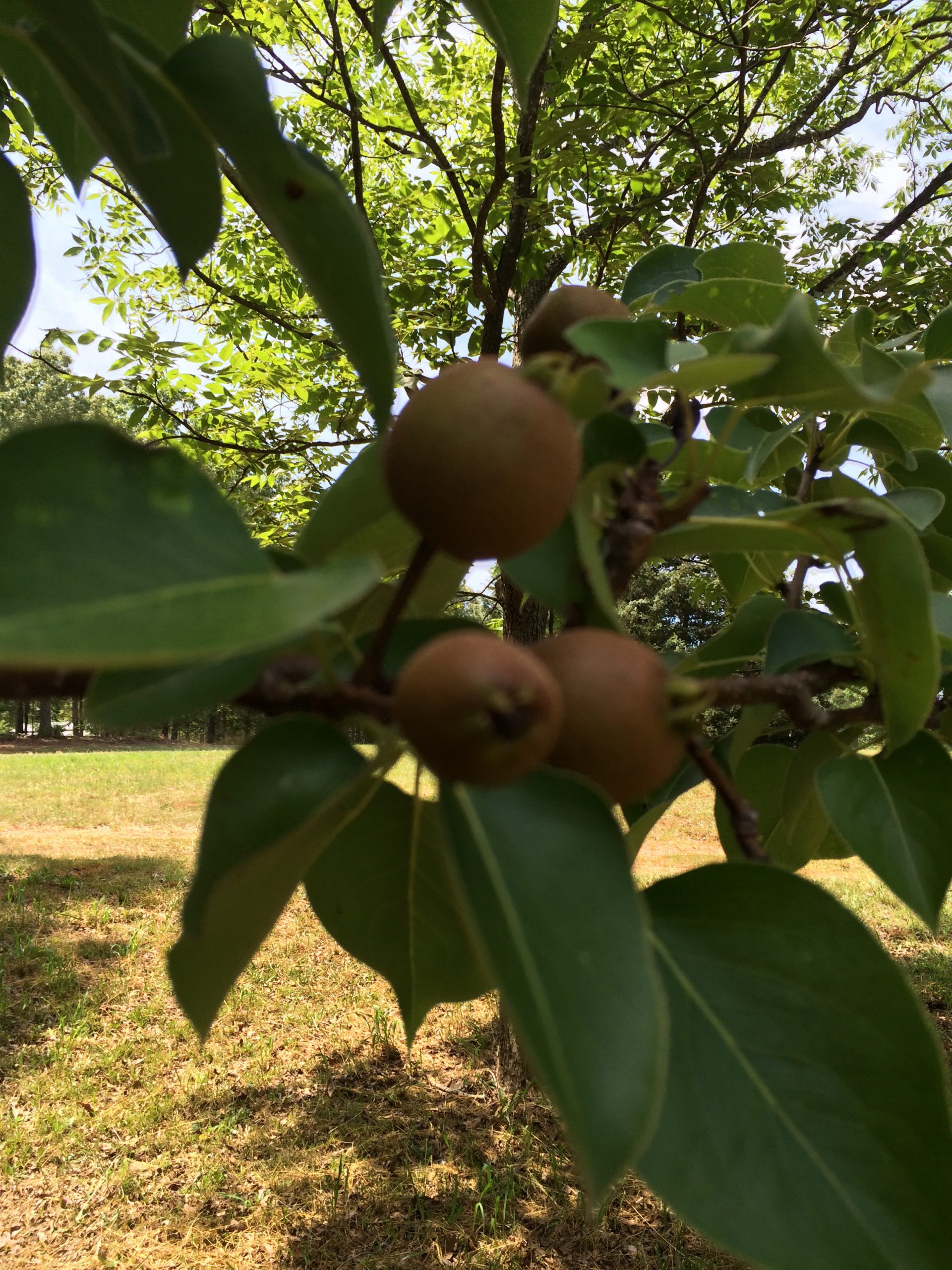 The fruit is 1 1/2″ in diameter and 1 1/2″ tall. Everything I have seen on the internet, as far as the leaves, does suggest a pear of some type. I was hoping for a definite identification and to know if it was eatable.