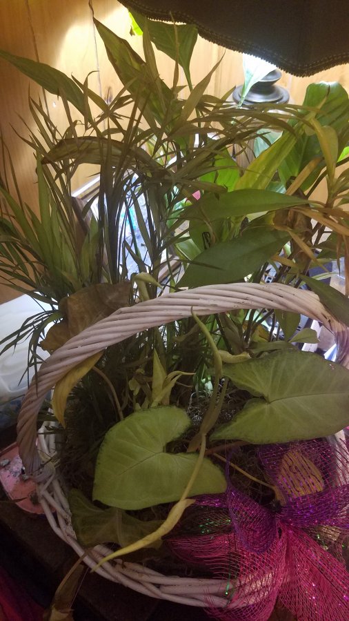 I received these at brothers funeral. Seems to have three different types of plants in one. Thick green leaves. Light thick leaves and the last has tiny stems with a bunch of tiny leaves (est of 6 leaves) on them.