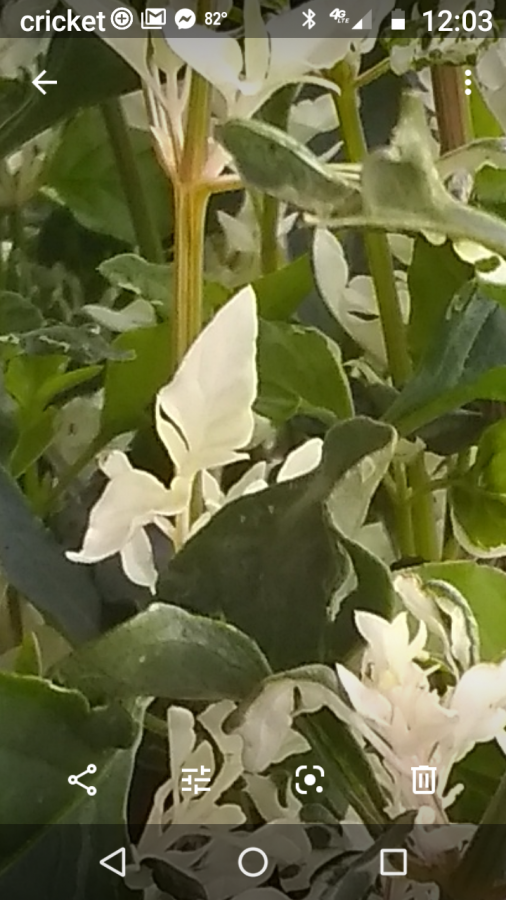 This flower/plant has little tiny leaves that are white making it look like flowers