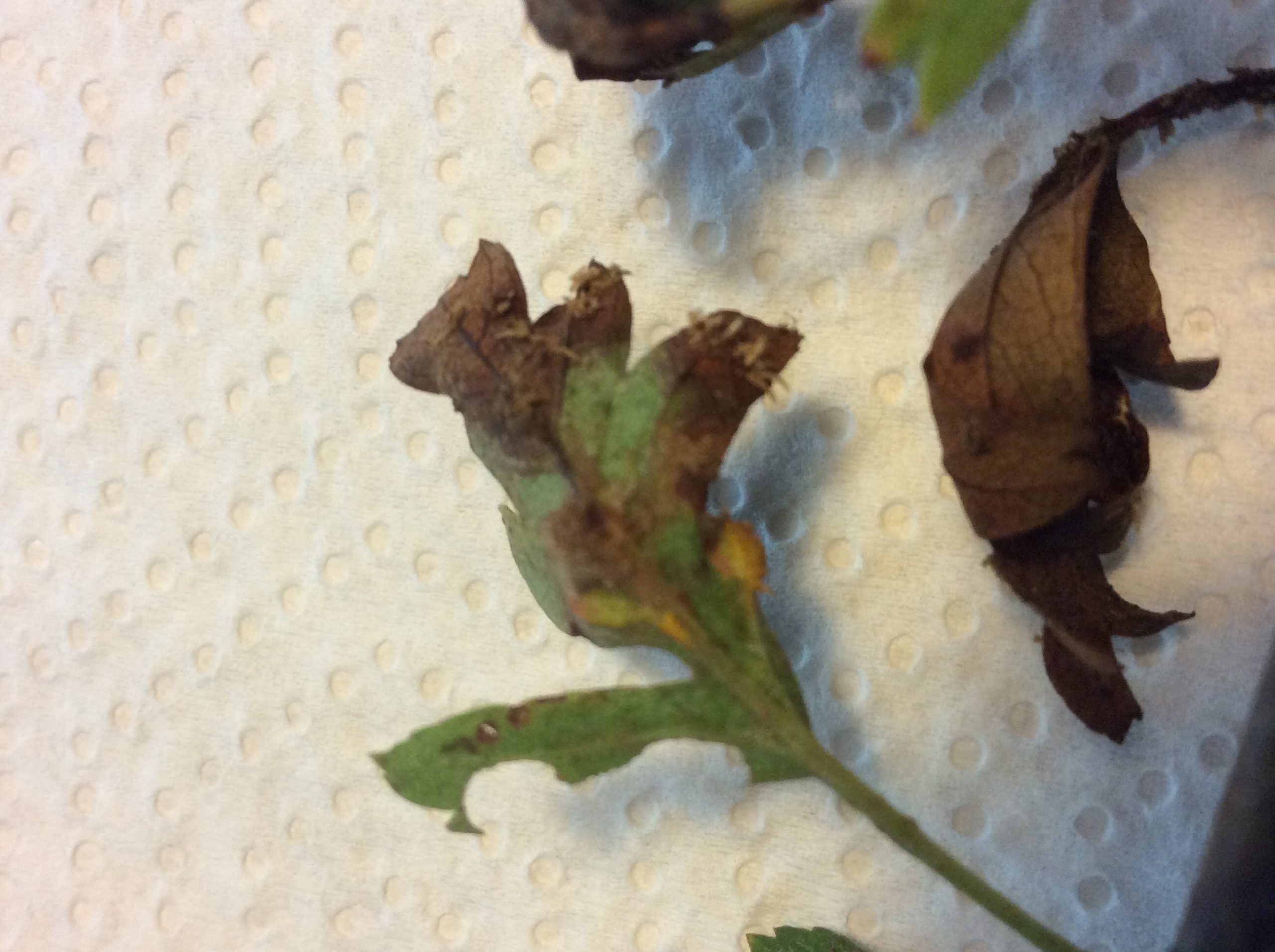 Large bush virtually all leaves dead. Some spots that look like rust. No surviving flowers or fruits. In hedge some dead leaves but mostly fruits affected, black and wizen.