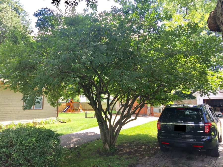 Just bought an old house and no one I’ve asked can identify this tree or shrub. Previous owners didn’t know what it was either. It is fairly tall. It doesn’t seem to have any visible flowering at this time. Leaves are sort of normal tearshaped with opposite pattern on stem. Bark is semi rough with long striations, definitely not smooth. Please help! Neighbor wants to cut it down
