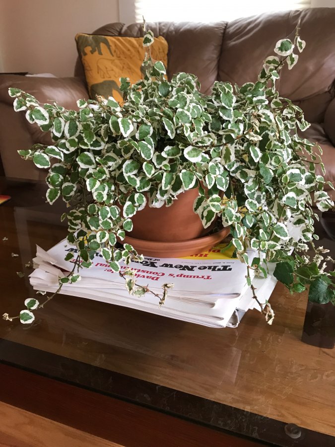 Maybe the Ficus pumila ‘Variegata’. Check it out and see if you have a match. The link below with tips for growing culture. Best wishes! http://www.learn2grow.com/plants/ficus-pumila-variegata/