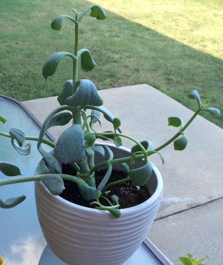 This plant was given to me as a house warming gift. It has green almost stalk looking stems with 2 leaves every few inches. There is no flowering. The main “branches” are thicker with bigger leaves towards the bottom. However, it does have some new growth with thinner looking stems. When it was smaller it stood mostly upright but as it’s grown it has started to droop more.