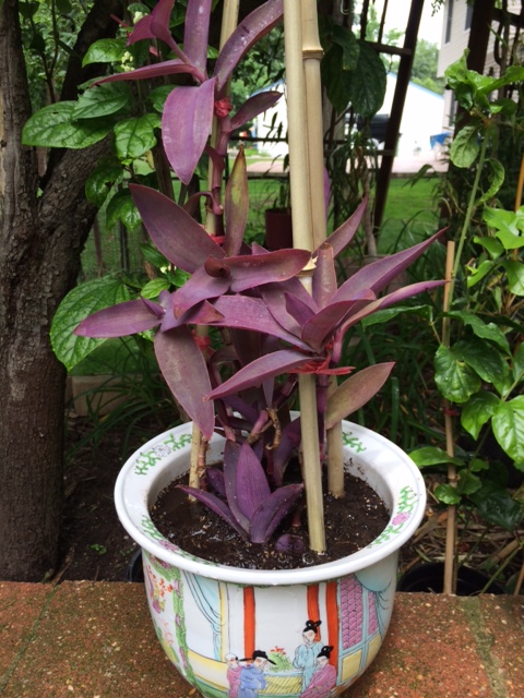 After seeing another posting on Purple Wondering Jew. Now I think mine is also a wondering jew. Maybe mine is more mature and getting more sun so it is reddish. Some body please conform! Tradescantia pallida is a species of spiderwort (a genus of New World plants) more commonly known as wandering jew. Herbert