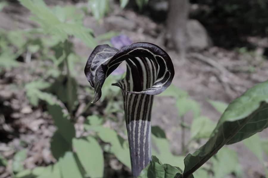 This is Arisaema triphyllum, more commonly known as Jack-in-the-pulpit.