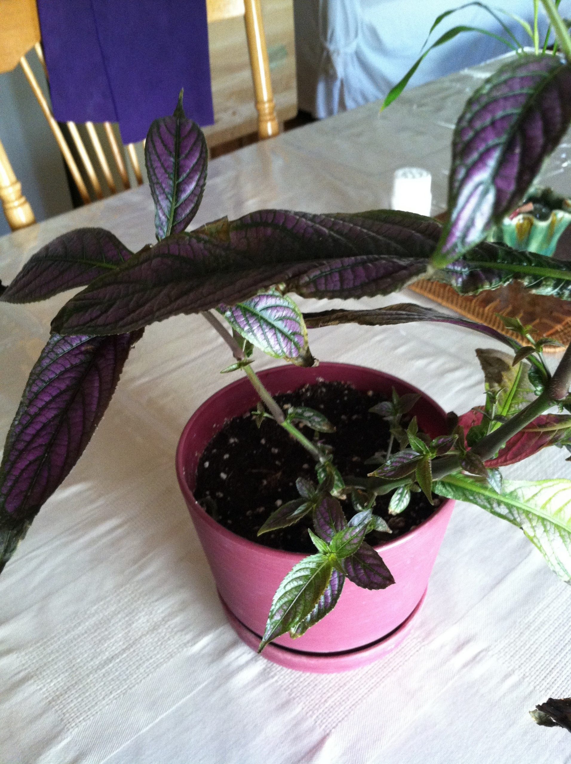 This plant is purple in the sun, but the lease are greenish purple when sprouting. Help please it’s drying