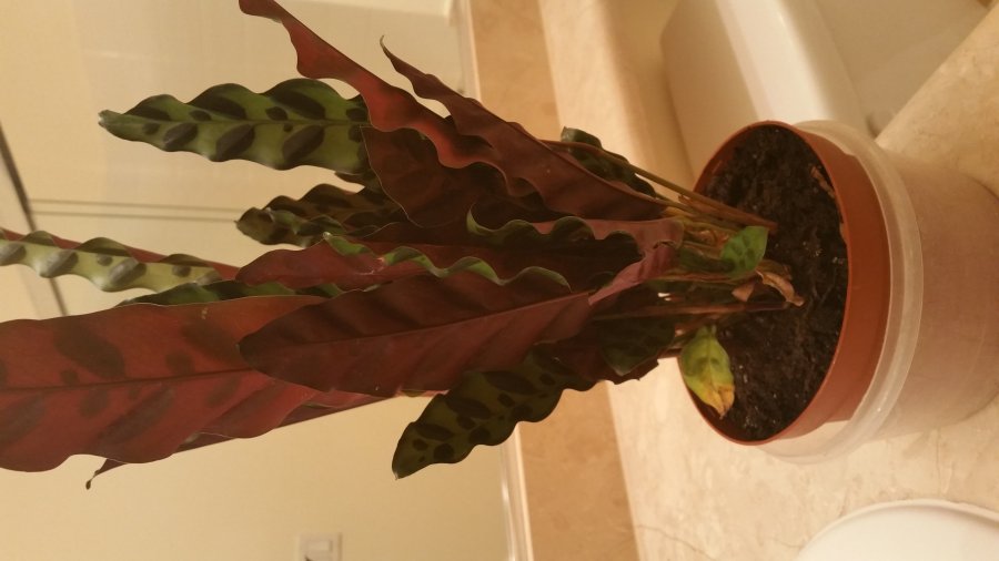 It’s a geenleaf plant with small dark leaf shaped design…burgindy colored on back of leaf.