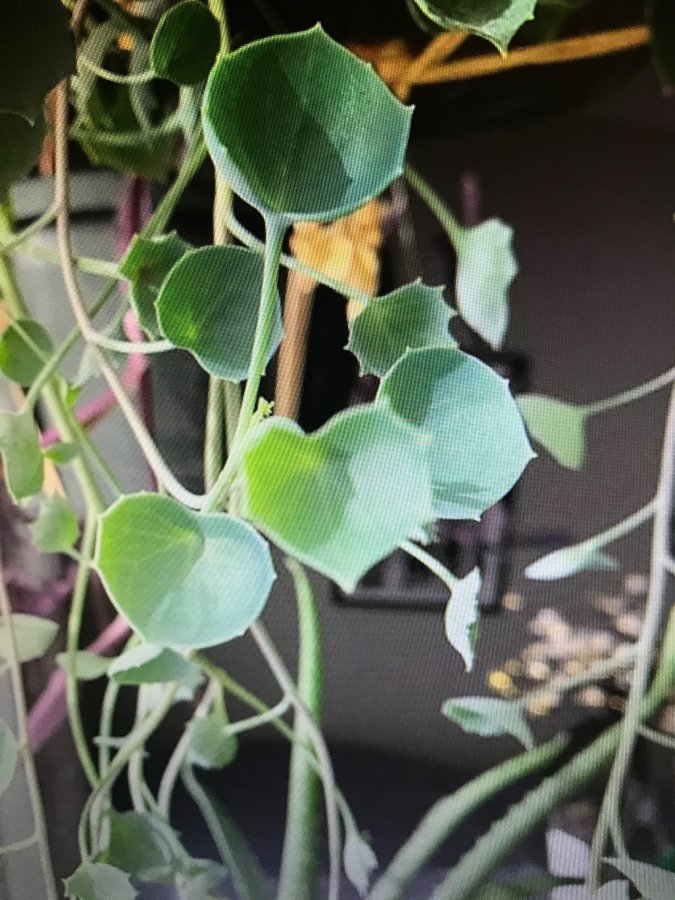 This plant does not flower and the leaves are substantial but not succulent. Vines and grows well in a sunny window.