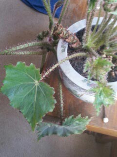this plant has red furry spikes along the stems, leaves can be medium to large with irregular leaves. one main stem is about 1-1/2″ in diameter