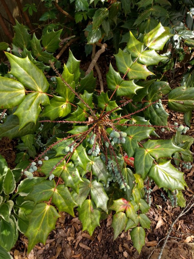A shrub, Mahonia. More comments at the 7th post following yours.