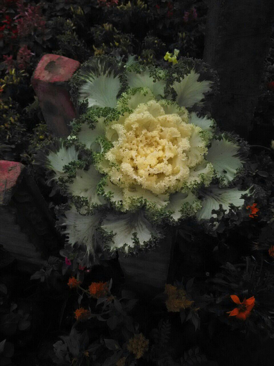 That is Flowering Kale, Brassica oleracea. Beautiful & edible, and closely related to Cauliflower. http://en.wikipedia.org/wiki/Kale