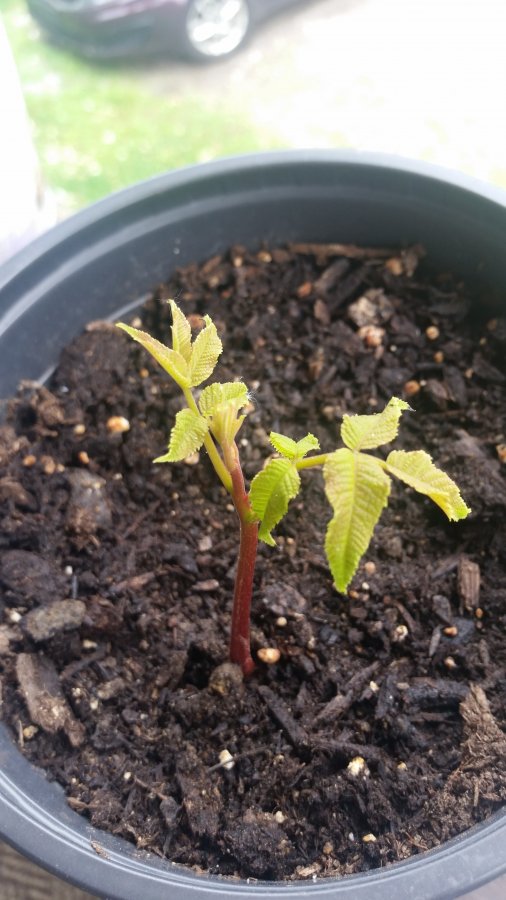 Western Pennsylvania plant started growing in May-June. I can’t remember if this is the same pot I tried growing a Mulberry tree in last season. This sprouted as soon as I brought the pot back outside and started watering it again. Is it Mulberry or just a weed/poision or something else? I replanted a succulent in this pot, but a critter broke it off when I moved it outside, then this started growing shortly after.