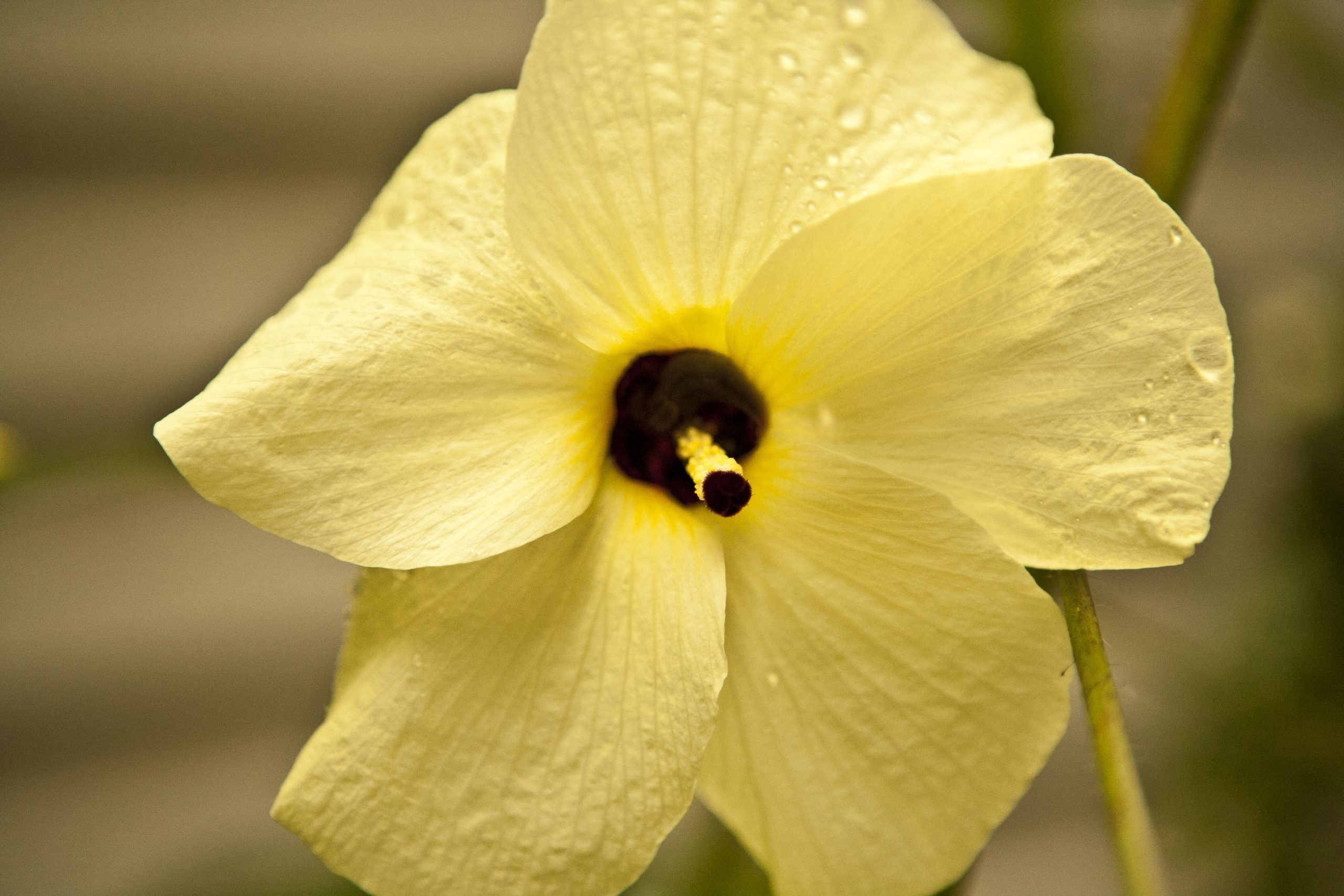 Plant stands 5 1/2 feet tall, lovely pale yellow blooms open each morning, blooming for the past few months, spiny stem/trunk. There are what appear to be seed pods at the top.