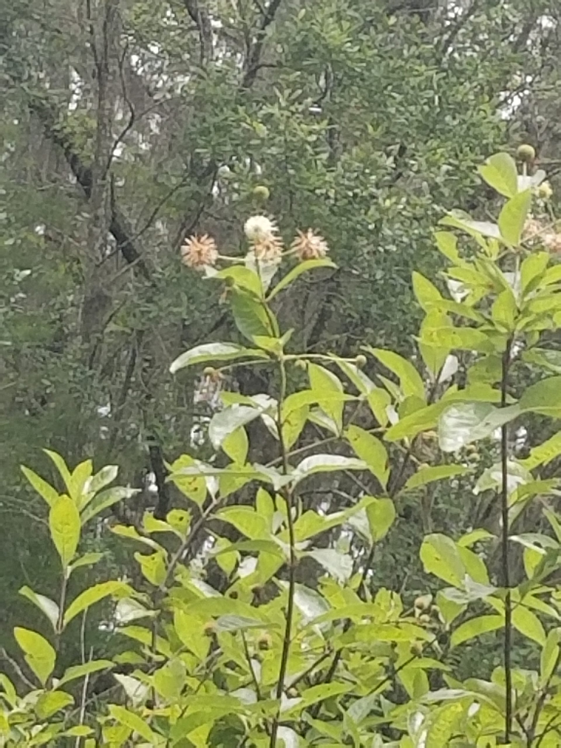 I found these small trees 7' tall on the edge of our family Farm pond. I know bumblebees love them. They have this green ball that blooms. I hate to mow them if they are useful.