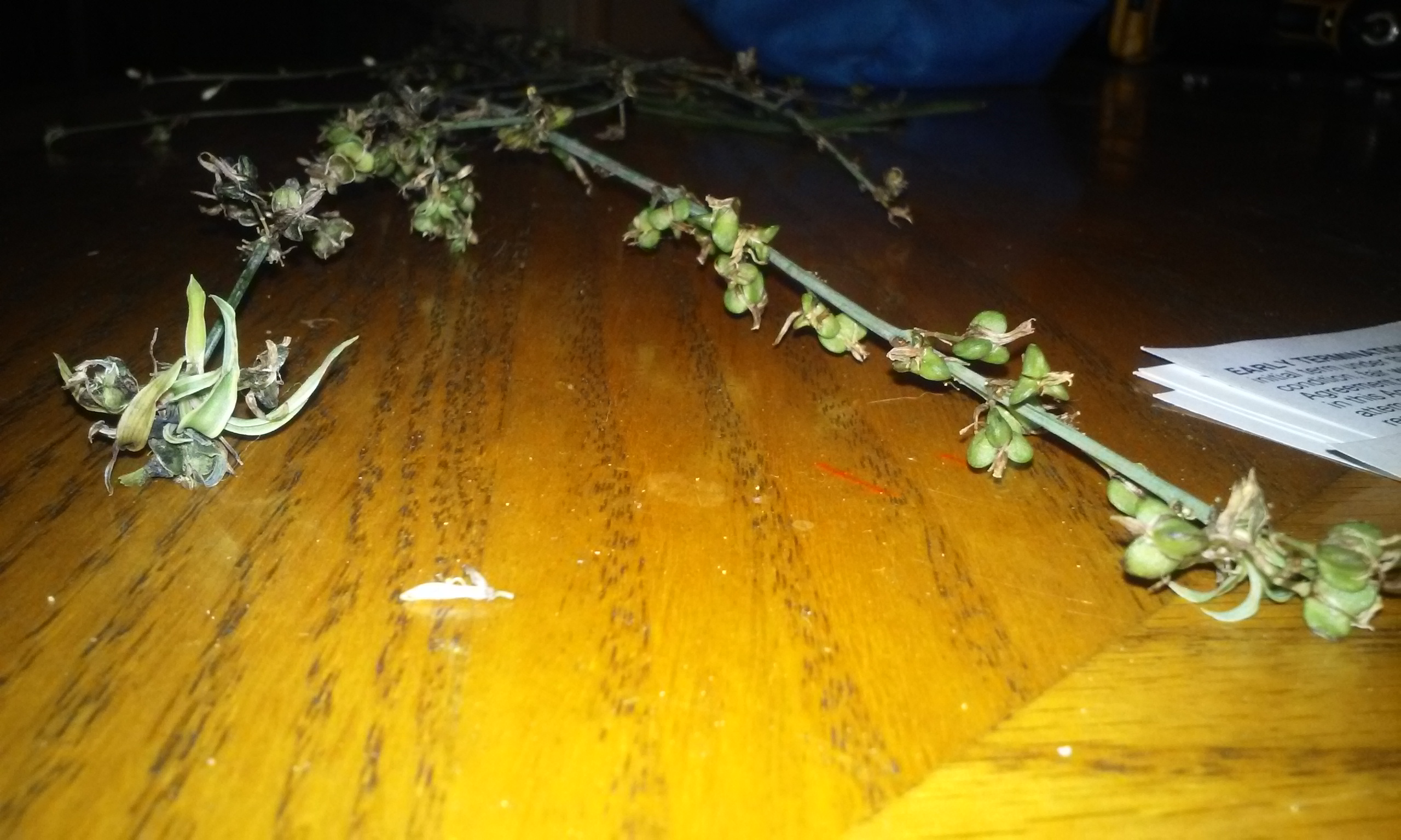 These vines we’re given to my wife and told they were spider plants the little white flowers are reminiscent of a spider plant however I have never seen a spider plant give off little pods such as this I’m thinking that they may be flowers ready to open but the vine was cut too soon if you look at the first picture you see what I’m talking about if you look at the last picture you will see the little thing that appears to be a spider plant I have never seen a spider plant go to seed.